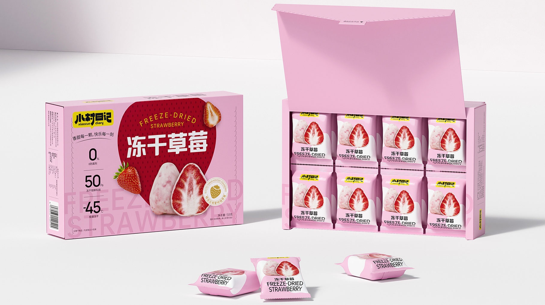 小村日記、凍干草莓包裝設計、食品包裝設計