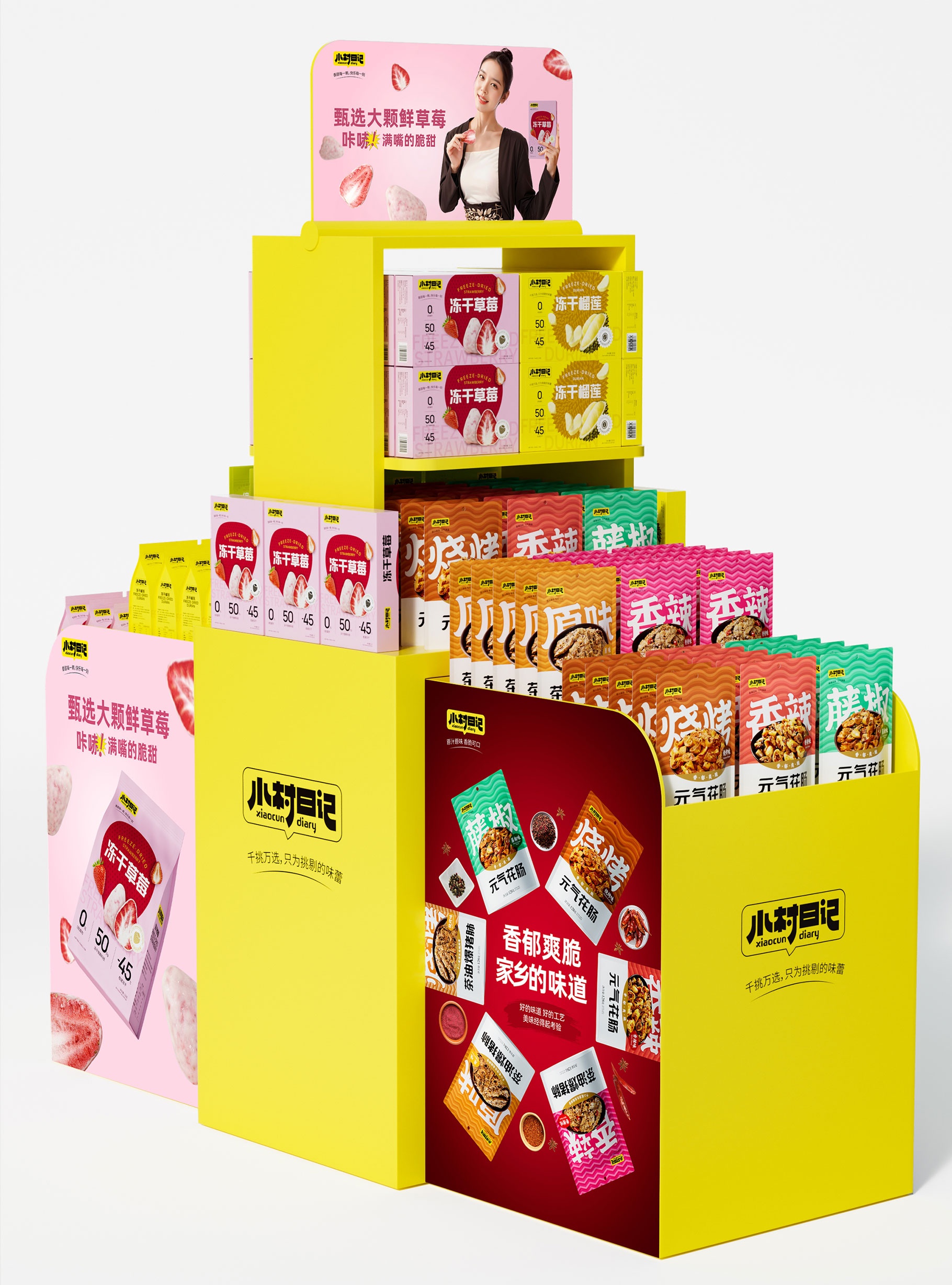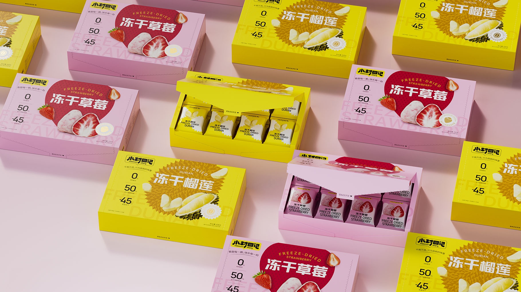 小村日記,凍干草莓包裝設計、凍干榴蓮包裝設計、綜合果蔬脆包裝設計,食品包裝設計